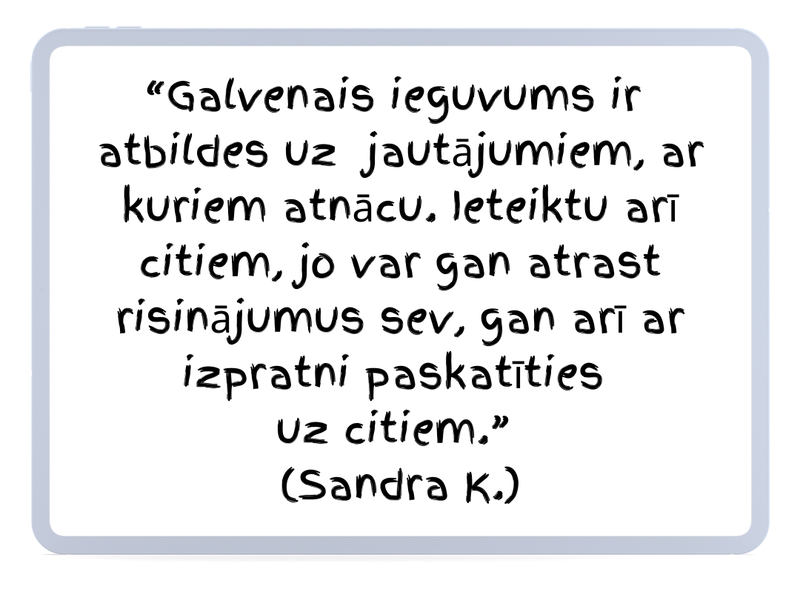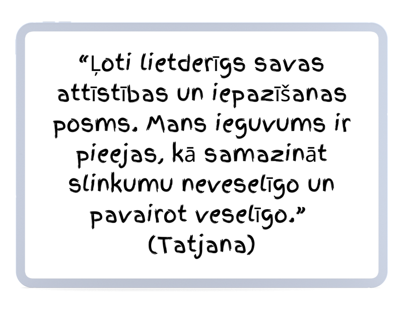 Meklējot risinājumus, sapratām, ka vispirms ir jāapstājas uz brīdi un jāieklausās sevī, par ko slinkums mūs brīdina šoreiz. Strādājot ar cēloni, nevis tā sekām, uzlabot produktivitāti un rezultātus sasniegt var daudz veiksmīgāk. Darbu sākām jau turpat auditorijā – gan pārskatījām savas prioritātes, lai mazsvarīgie jautājumi lieki nenoēd enerģiju, gan prioritāros jautājumus strukturējām konkrētos un pārskatāmos rīcības soļos. Par prioritāšu izvērtēšanu un plānošanu vairāk lasi šeit.